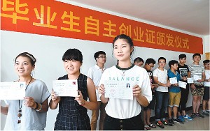 图为2015届毕业生获得自主创业证书。
