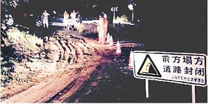 当天,义北遭到暴雨袭击,杜上线大畈村路段发生山体塌方,路基被冲毁。公路管理部门一边利用路旁的空地开辟出临时通道,让车辆通车,一边通过电话、微信、QQ等通讯工具,组织人员及设备,赶赴塌方现场清理泥石,抢修公路。
