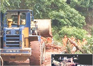 东鲤线0k+200路侧山体塌方,公路管理部门组织抢险。