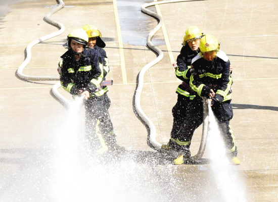 消防官兵还向大家细致地讲授了一些实用的消防知识,讲解了灭火器的种类和使用方法,并进行了实地演示。