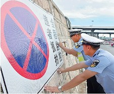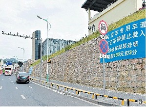 目前,铁路义乌客站站区正在改造,进出站的乘客较多。站区周边的站南一路是公交车专用道,但每天都有不少车辆逆向行驶和“闯禁”,执法部门在多个路口增设警示牌的基础上,展开联合整治。