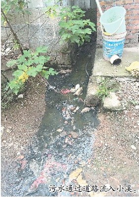 除了满眼垃圾,村道路上一条条的“拦路河”也非常碍眼。记者走访发现,村里并没有进行截污纳管,污水都直接流进了小溪里。记者问一位正蹲在门口洗碗的村民,家里污水往哪流,这位村民说:“大家都一样,往溪里流呗。”