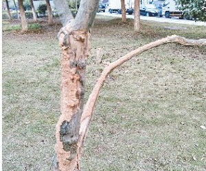 “每年夏秋交界的季节,小区就开始白蚁泛滥成灾,大多数树木都遭殃。”来自小区物业公司一位保洁师傅告诉记者,小区内的大多数树木都已被白蚁侵袭过,其中受灾最严重的是香樟树,有300多棵,其次是桂花树和银杏树。