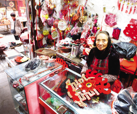 现年78岁的王金芝依然在义乌佛堂老街上销售婚庆用品。昨天,记者来到她店内,她的头发花白但眼神依旧清亮有神,还正在缝制用古铜钱点缀的嫁妆礼品。据了解,她从13岁开始卖菜秧,20多岁嫁到佛堂老街附近,丈夫做皮箱,她卖小百货,就这样在佛堂卖一天,在义乌湖清门市场卖一天。1982年冬,她从义乌工商部门领到了一本临时经营许可证,有效期一年,编号为“义工商临字0198号”。这是义乌市场开创以来颁布的第一批经营许可证。她告诉记者,自己做了一辈子生意,见证着义乌的经济发展,现在坚守着这家小店,赚钱不是目的,就是图个热闹。