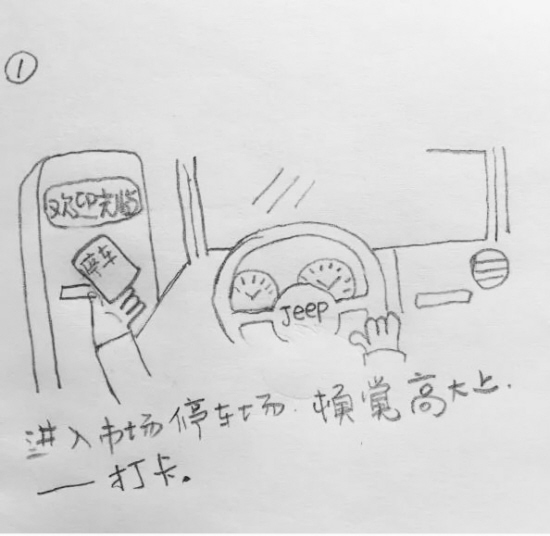 近段时间,因为摊位生意相对较淡,他萌发了用漫画记录生活的想法。几笔线条一勾勒,一个以他自己为原型创作的人物“小贱”跃然纸上,进而也产生了《市场上的一天》漫画系列。之后,“禾乃”把作品分享到了微博、微信朋友圈,没想到大受好评,还经常有人留言催更新。