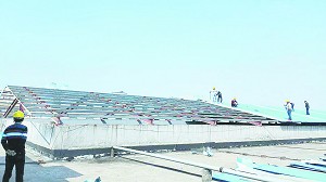 昨日,城西街道某饰品厂内迎来了一批“不速之客”。他们中既有头戴安全帽的施工人员,也有身穿工作服的执法人员。在做好相关准备工作后,施工人员开始登上厂区内的一彩钢棚顶部,对其进行有序拆除。