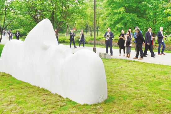 昨天下午,由中国雕塑学会、清华大学美术学院和义乌市政府联合举办的首届“金乌之梦”国际户外雕塑邀请展开展暨义乌国际雕塑公园开园仪式在福田湿地公园举行,金华市委常委、义乌市委书记盛秋平宣布开园。