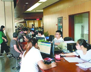 市民正在参保大厅内办理业务。