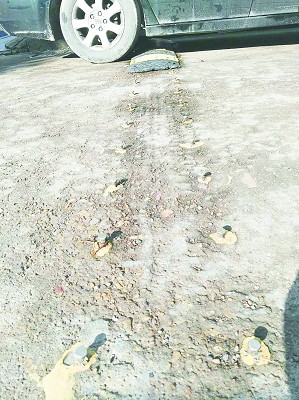 减速带成了“钢钉阵”,其他的地段有没有?记者一路查看,到了贝村路、江东路等一些路段,也发现了“钢钉阵”。在贝村路童店三区路口,一条减速带已脱落近1/3;再往前,靠近一家银行的路口,又有一条断裂的减速带,水泥地面上布满了钢钉。“这路口钉子太多了,看上去很危险,我每次开车经过这里都很小心,只怕被扎破轮胎。”一名过路司机说。之后,记者在江东中路与龚青路交叉口等处都发现有不少破损的减速带和裸露的钢钉阵。