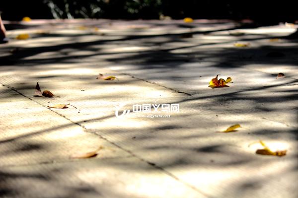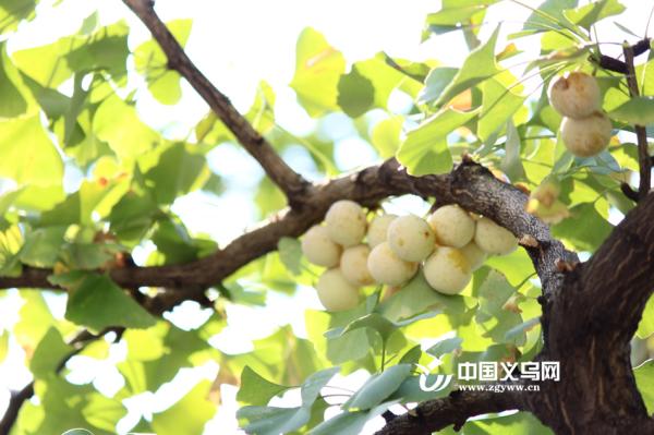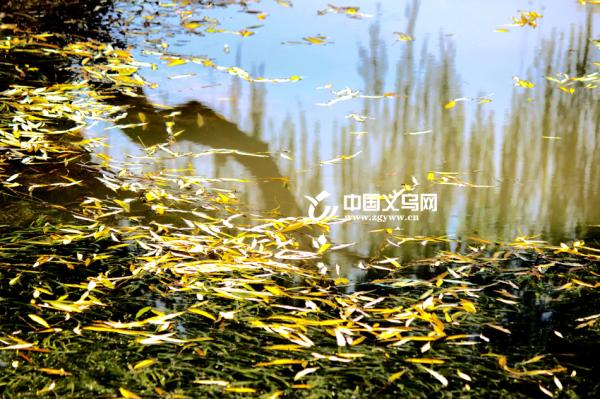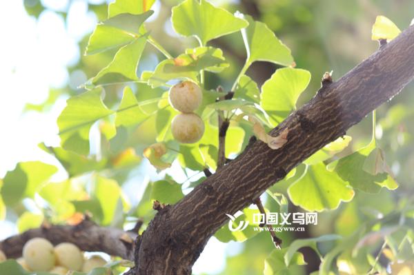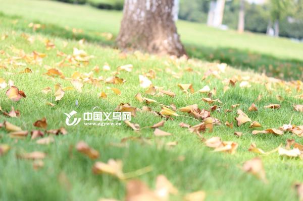义乌市民广场上结满白果的银杏树、铺满草坪的落叶,还有公园里池塘中泛黄的柳树叶都在向人们宣告着秋天的到来。