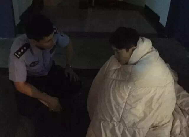之后,义乌市公安局江东派出所将男子带回所里,民警找了条被子给男子披上。值班民警之后又轮番对男子做思想工作,待其情绪平稳后,才将他送回家里。