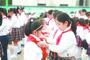 “我是中国少年先锋队队员,我在队旗下宣誓:好好学习,好好工作,好好劳动……”日前,廿三里一小举行了“红领巾相约中国梦”为主题的入队仪式,178名低年级小学生在高年级大哥哥、大姐姐的帮助下,带上了鲜艳的红领巾。